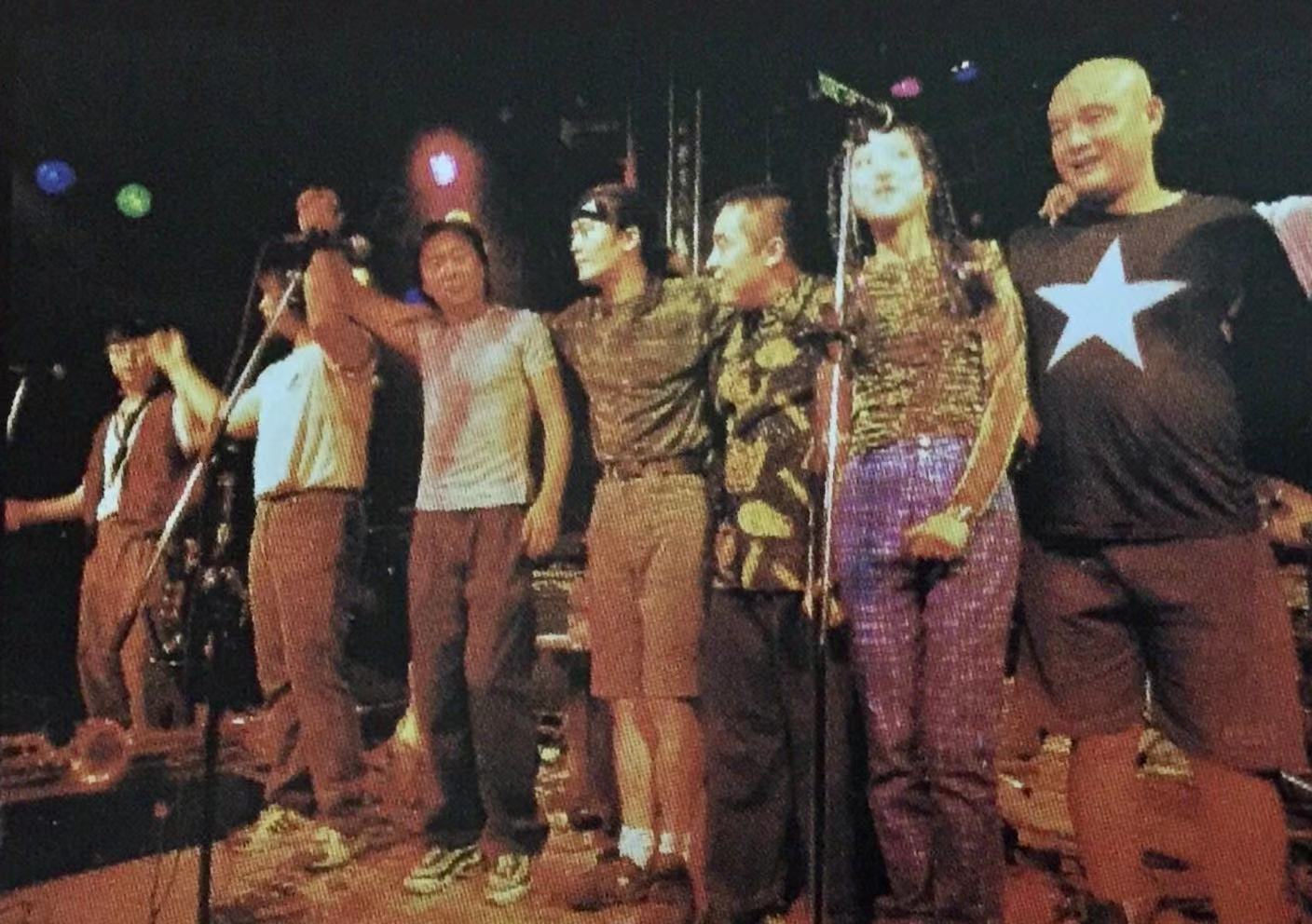 戴兵(右三,右二为付梅)的D.D.节奏与崔健(左三)一同表演。周俭供图