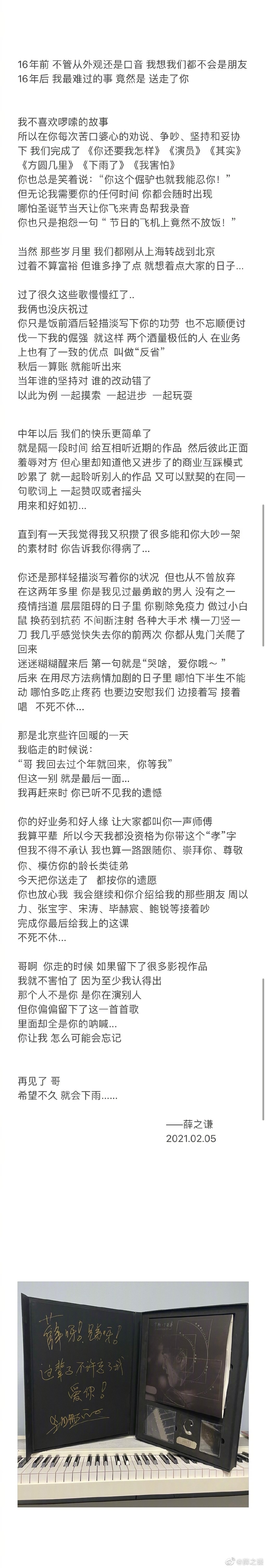 薛之谦发长文悼念赵英俊:你是我见过最勇敢的男人