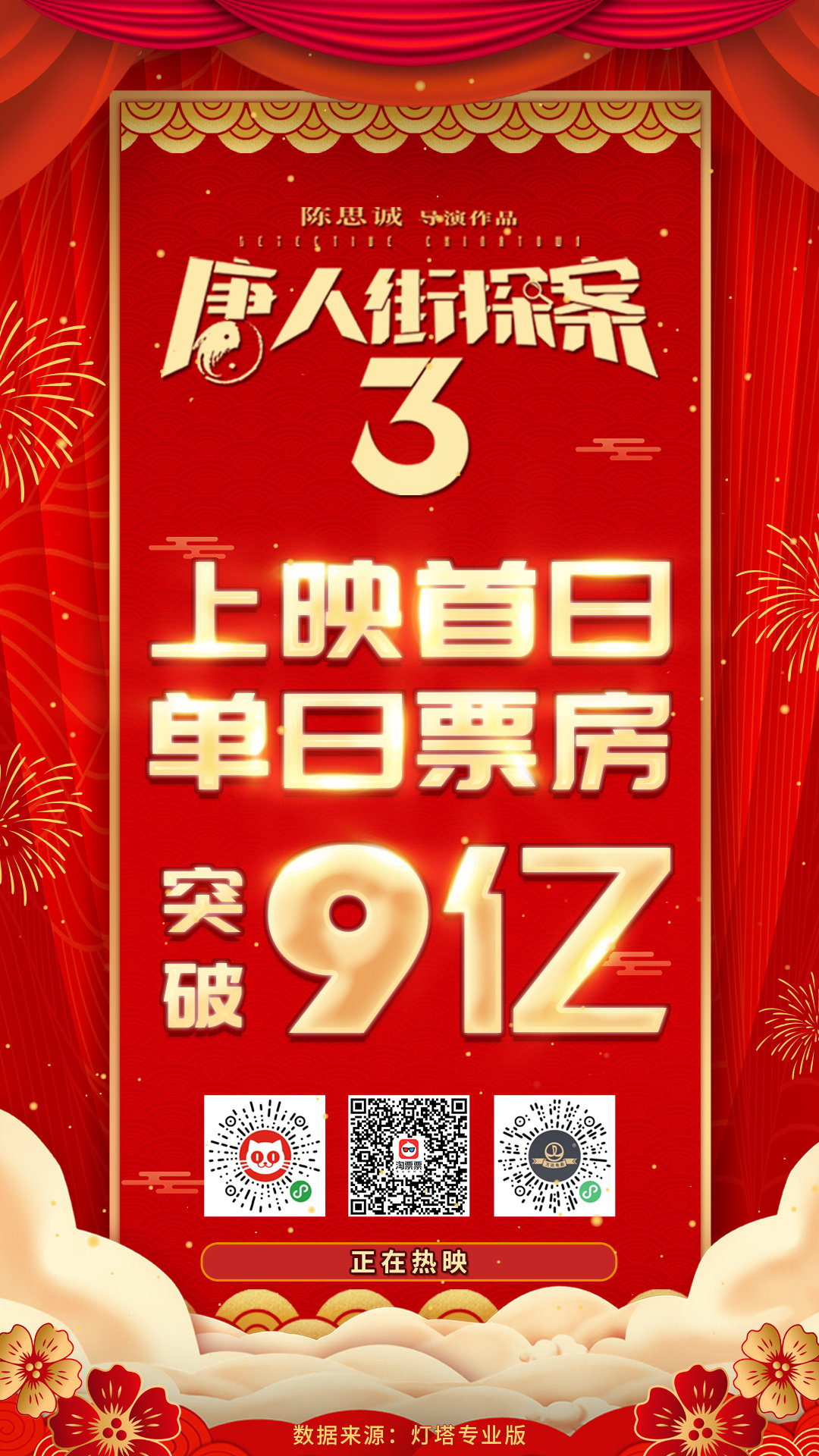 大年初一创中国影史单日票房纪录,《唐探3》票房破9亿