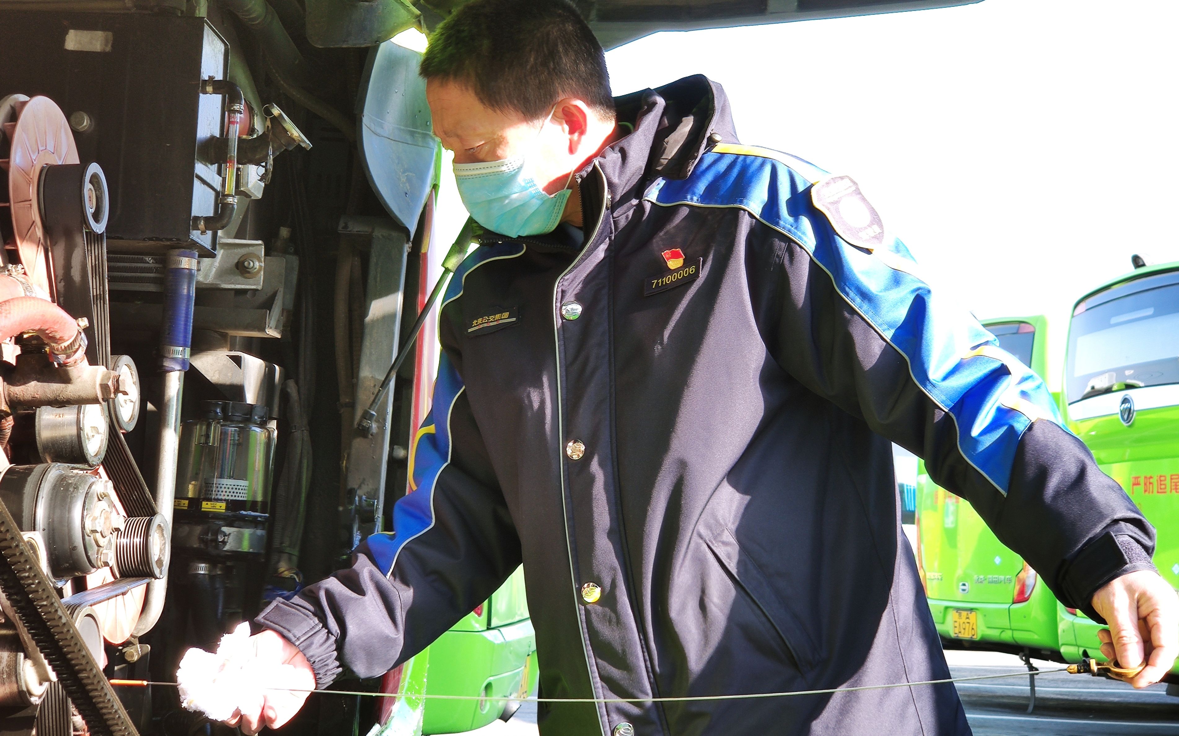 今天是大年初五,也是阖家团圆的日子,早上5点,整个城市还在熟睡中时,“摆渡人”们已经穿好工作服,准备开始一天的工作。检查防冻液、发动机、灭火器、轮胎等设施,擦洗车厢内外,给乘客一个舒适的乘车环境。疫情防控特殊时期,他们“披着”还未褪尽的夜色出了门,在发车之前,把车子从前至后、从里到外都进行了打扫、消毒。
