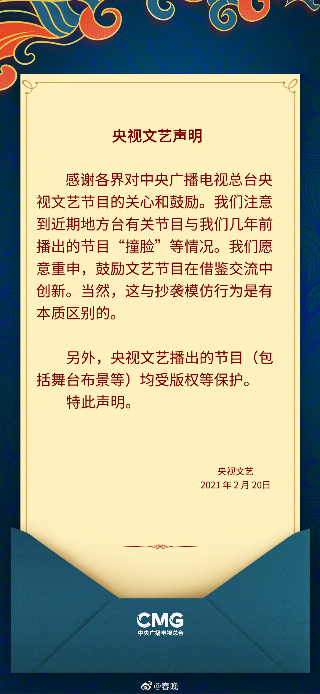 央视文艺发声明维权,拒绝抄袭模仿