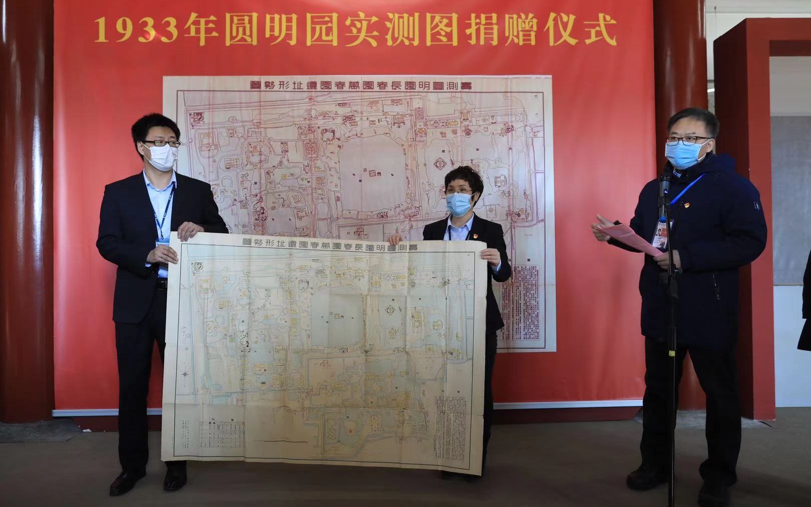 去年,圆明园罹难160周年,70多岁的康睦先生看到马首回归和圆明园文物回归等相关新闻报道之后,主动联系圆明园管理处,希望捐赠家藏的1933年版《实测圆明园长春园万春园遗址形势图》。据了解,实测图系康睦先生家人购于1956年,一直珍藏至今。