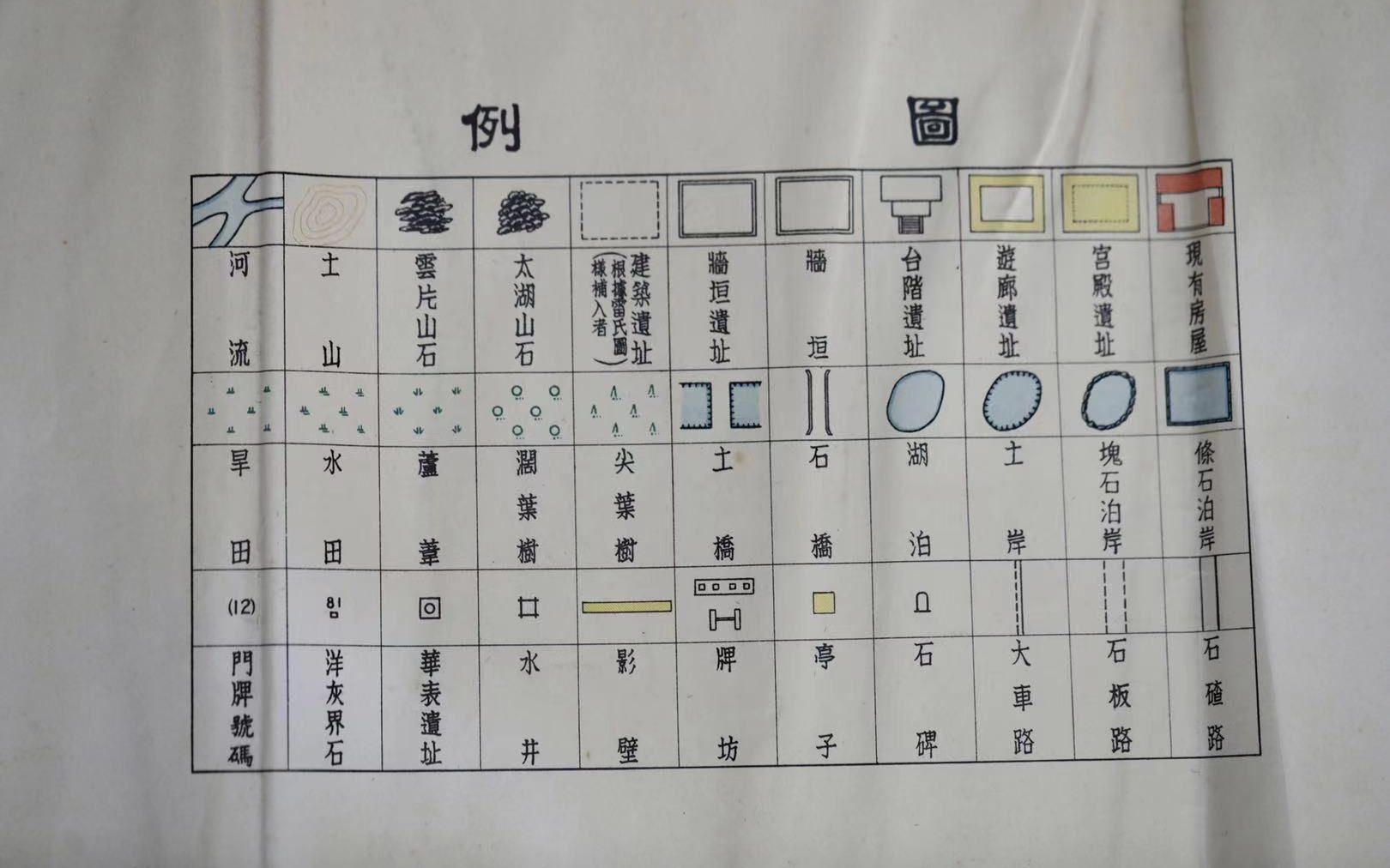 1933年版《实测圆明园长春园万春园遗址形势图》图例。新京报记者 浦峰 摄