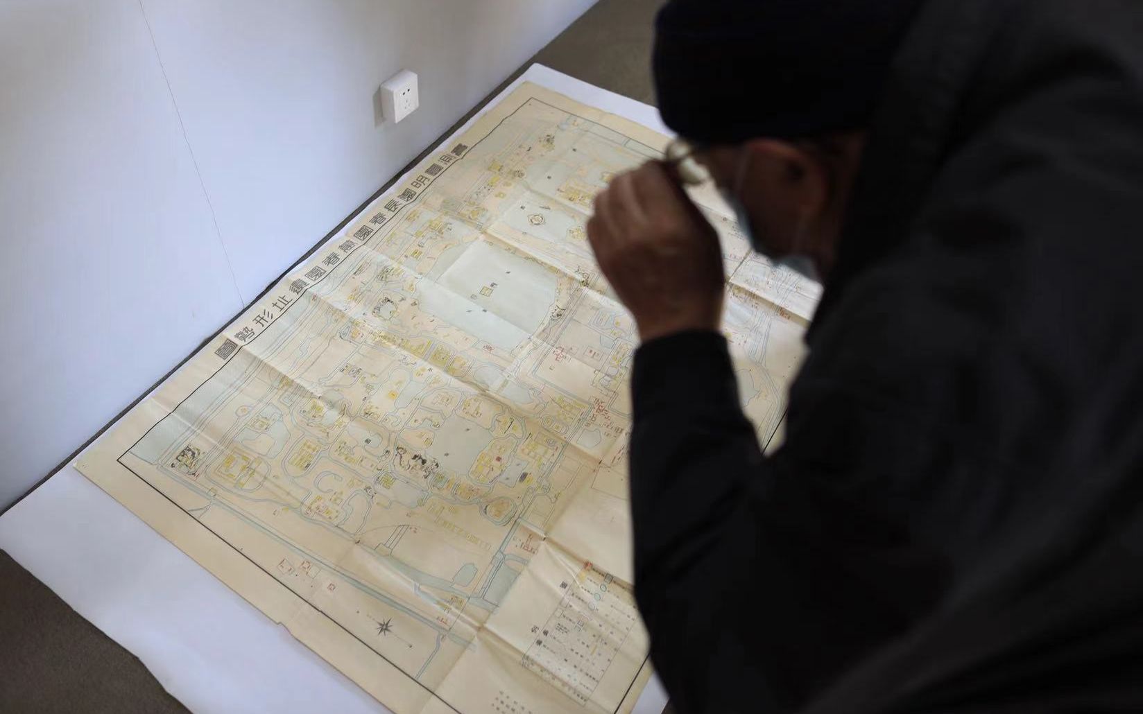 热心市民康睦一家向圆明园管理处捐赠了家藏的1933年版《实测圆明园长春园万春园遗址形势图》。新京报记者 浦峰 摄