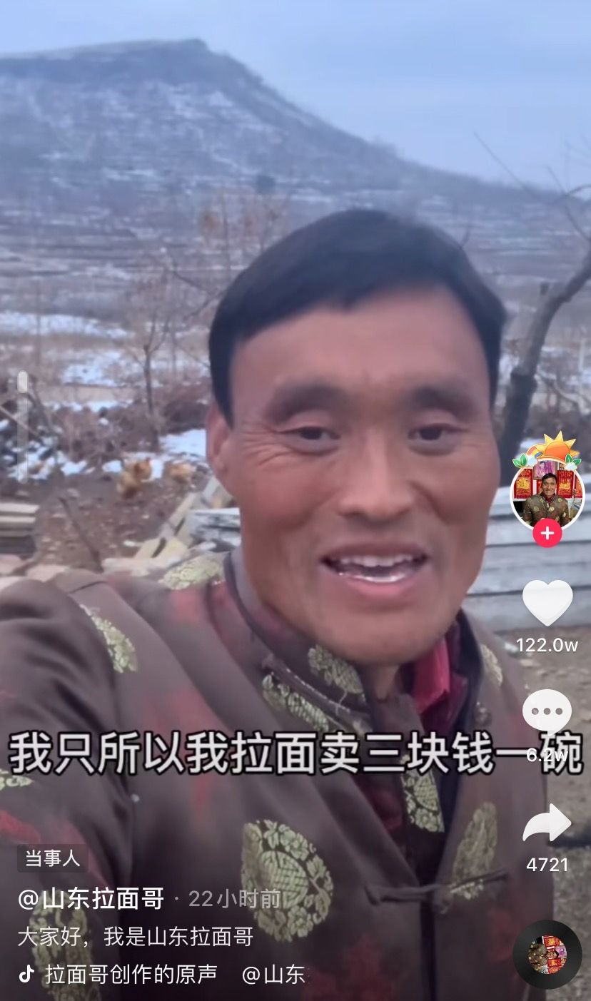 近日,这位15年来一碗拉面只卖3元钱的“拉面哥”火了。据悉,一碗拉面只能挣4、5毛钱,如此“薄利”一天也就赚个百十块钱的辛苦钱。