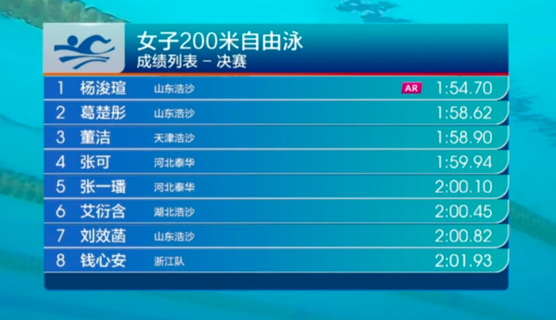杨浚瑄打破女子200米自由泳亚洲纪录