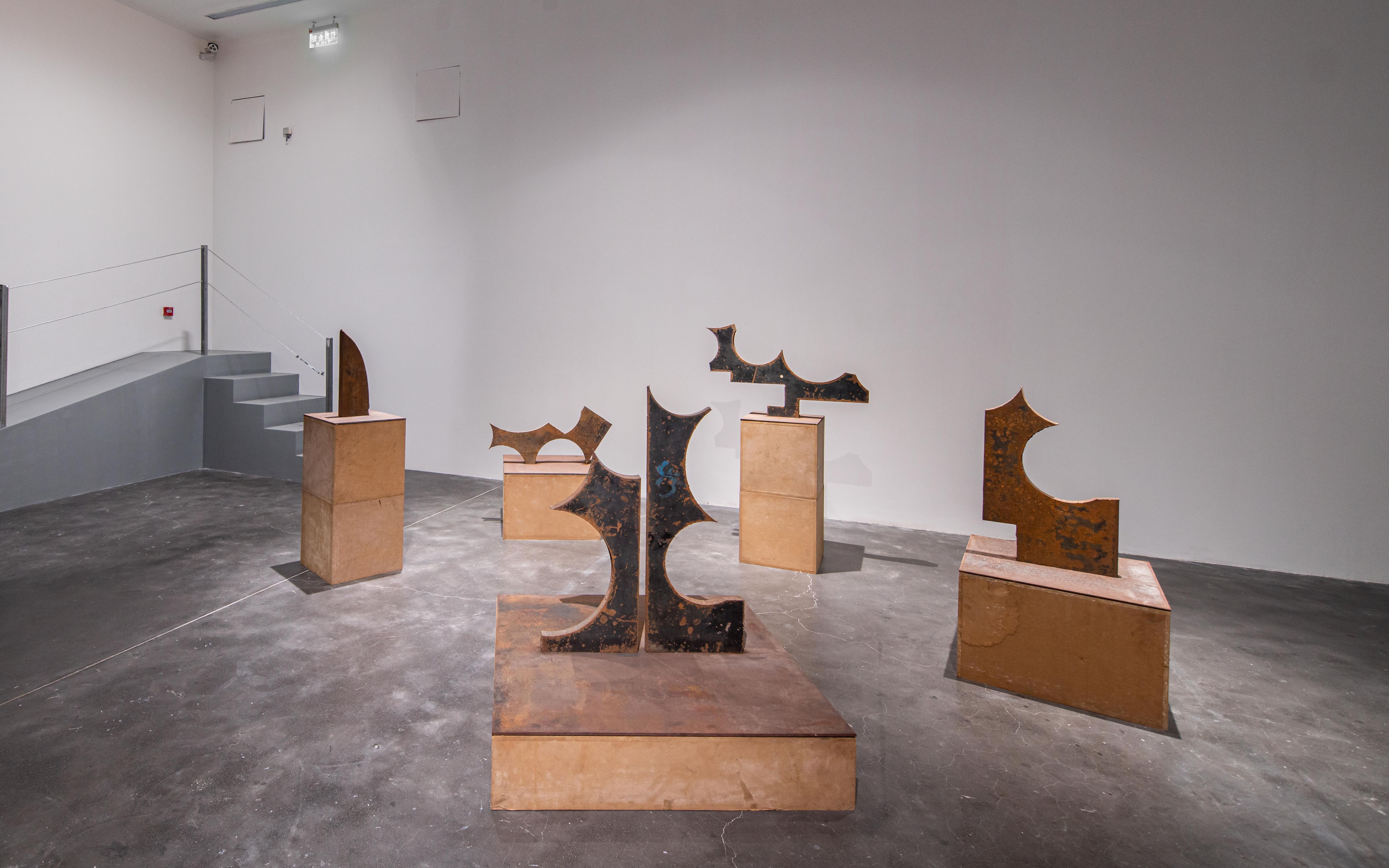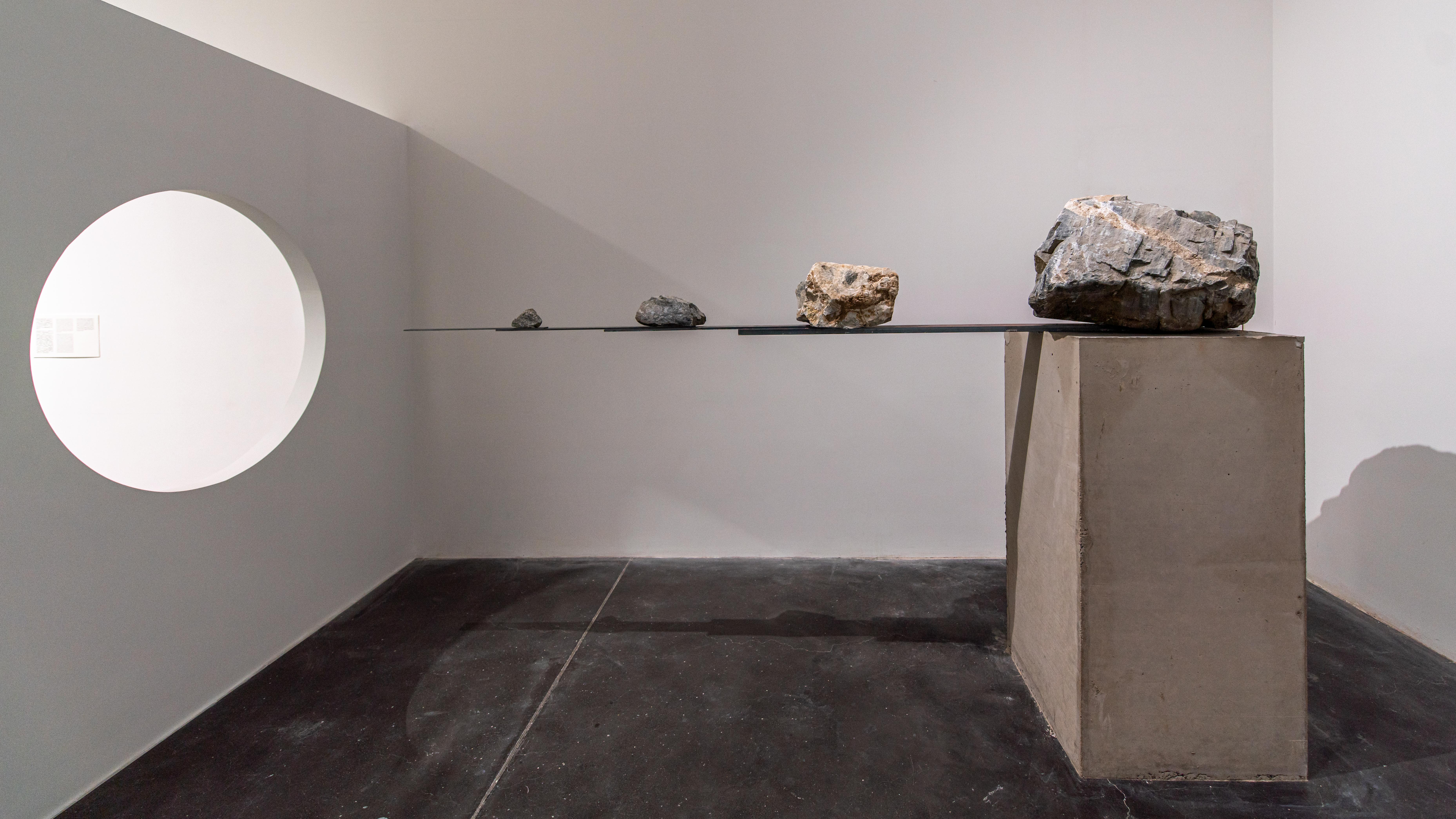 另据田霏宇介绍,此次展览四位艺术家各自选择了一段唐宋禅宗的文献作为创作出发点,其中廖斐的作品颇为特别,也是整个展览空间设计的一部分,其灵感源于其对中古寺院与园林的关注,尤其是对建筑作为肉身居所和神圣空间的思考。廖斐以UCCA中展厅和新展厅原有的承重柱作为构思的出发点,将两个展厅转变成一个可游可思的类园林空间。除设计了本次展览的展厅之外,廖斐还展出了两件具有思辨气质的作品:通过对材料特质的分析和数学计算,仅凭重力将石头、木头和金属制成的组件以未加辅助固定的方式放置在一起,以此指涉有形和无形。
