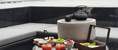 他买了一辆二手的大巴车,拆卸了椅子,摆放两排长桌子,冬天赶集时,客人可以在车上坐着吃,暖和多了。