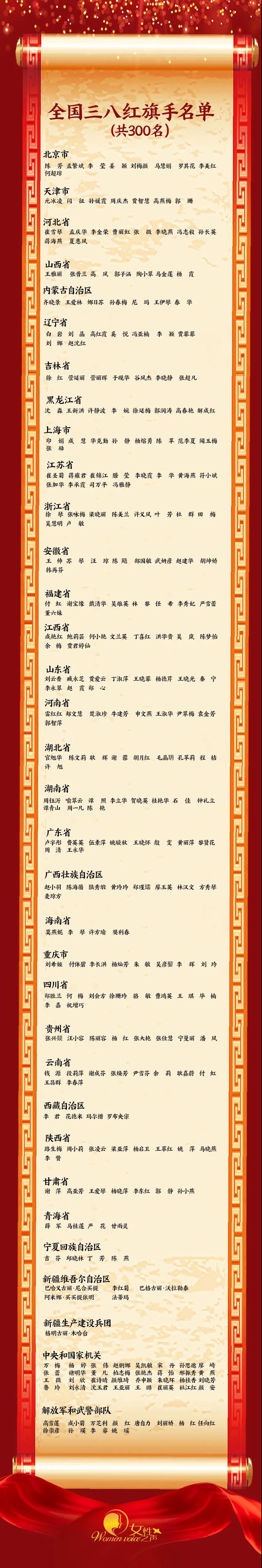 2020年全国三八红旗手标兵、全国三八红旗手(集体)名单公布