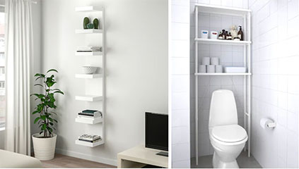 在家居空间中,总有被忽视的“宝藏”,如墙面空间。这些置物工具或许能打开你的想象力,变“废空间”为宝。墙搁板适用于任意的墙壁空间,可以根据具体空间和储物需求,垂直或水平安装。卫生间马桶上方的墙壁也常常被忽视,用置物架充分利用狭小角落,既实用又美观整洁。
