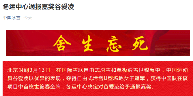 带伤斩获世锦赛首冠,冬运中心通报嘉奖谷爱凌