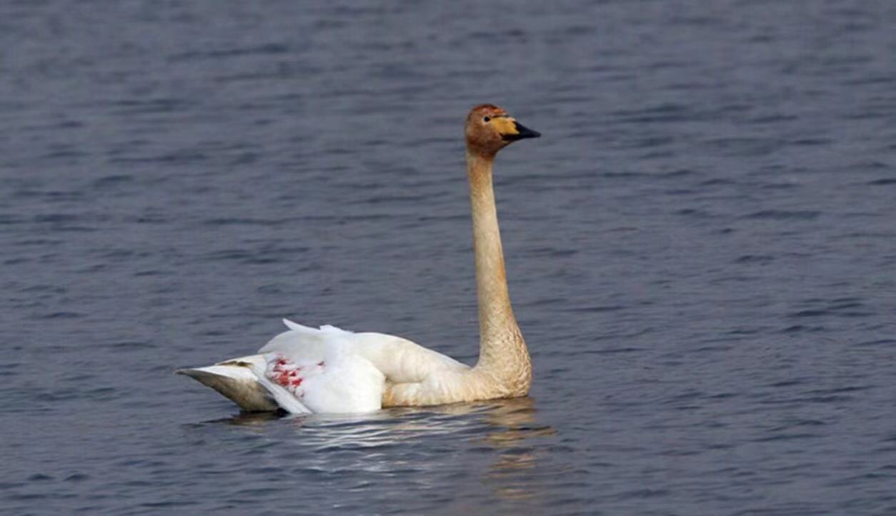 一只大天鹅背部两处中弹,不治身亡