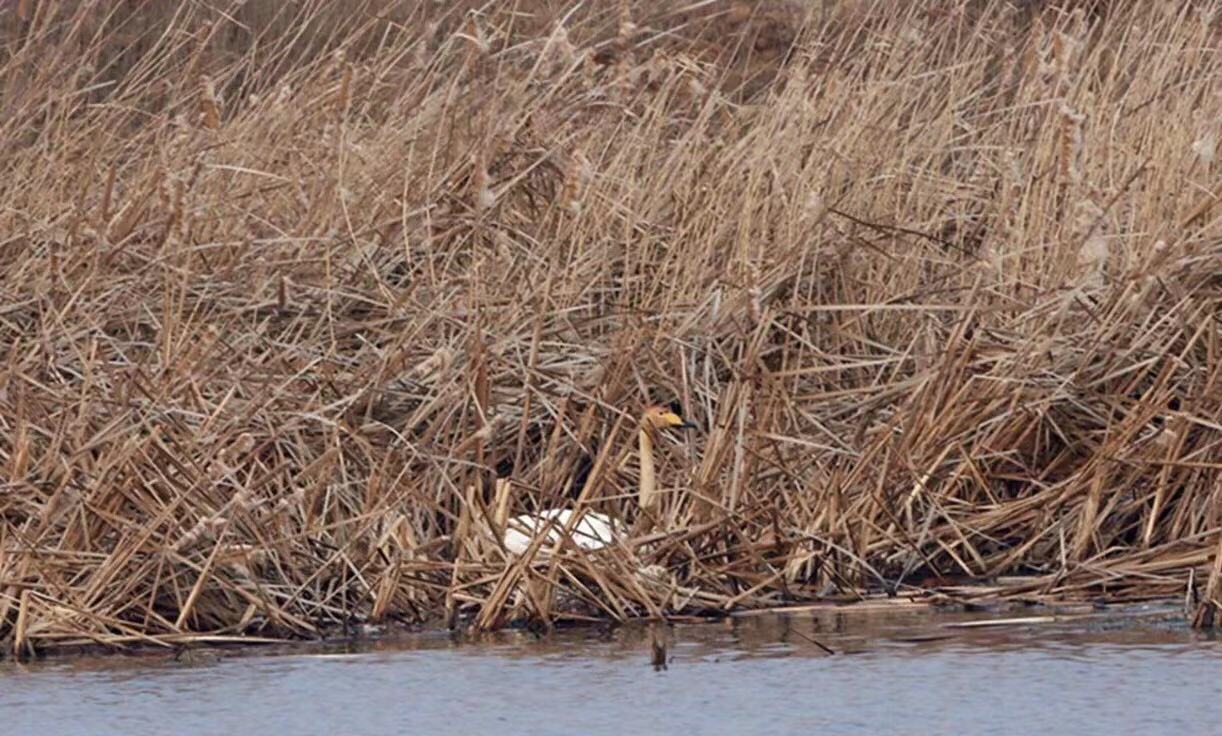 据谷国强观察,游走的大天鹅右翅上有四处出血点。随后,村民又在东岸的芦苇丛内发现了一只受伤的大天鹅。