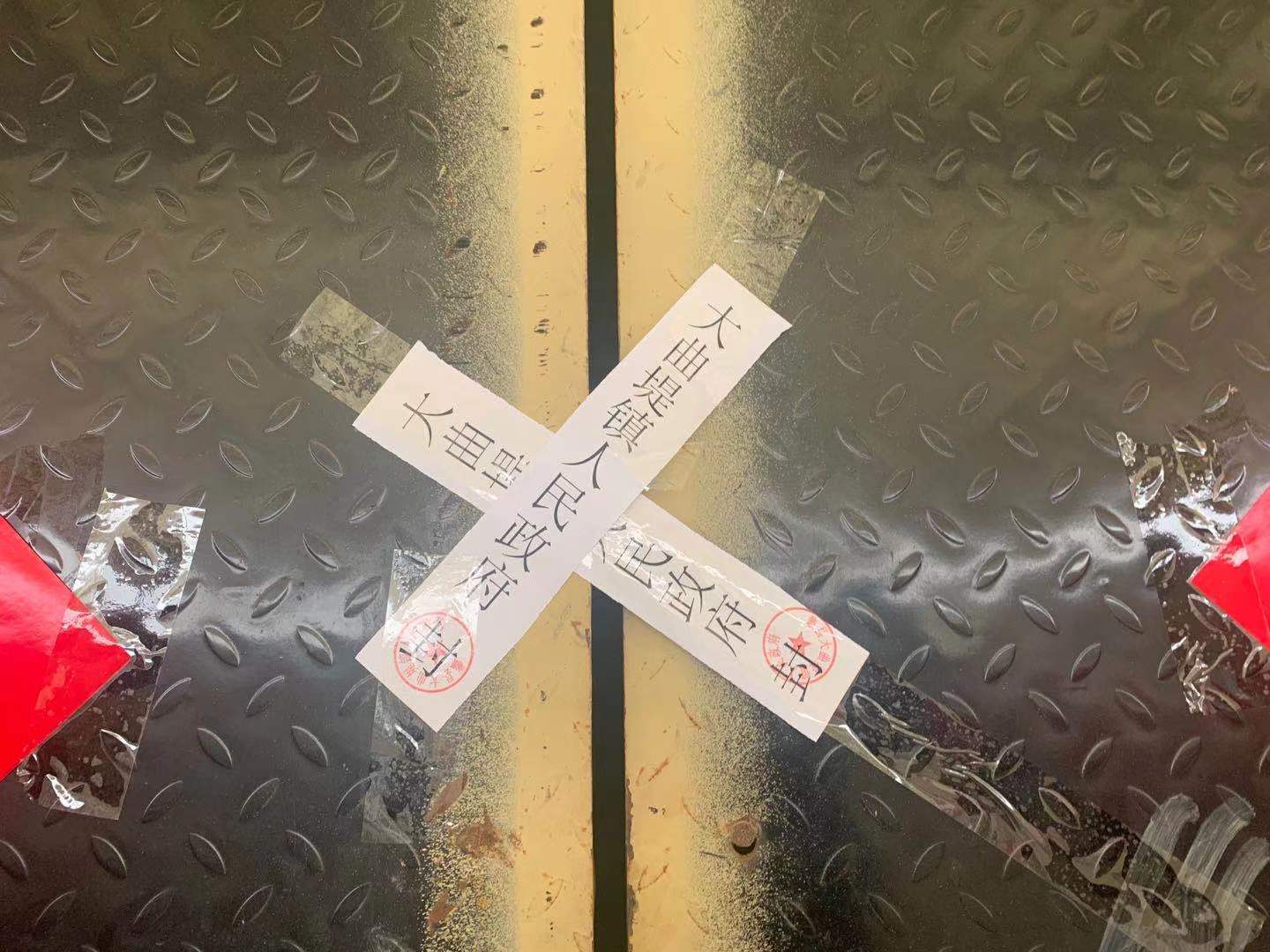 随后,镇政府工作人员在启灏麻山药合作社车间大门贴上印有“大曲堤镇人民政府封”字样的封条,已装箱的山药、运输车辆等都已贴上封条。
