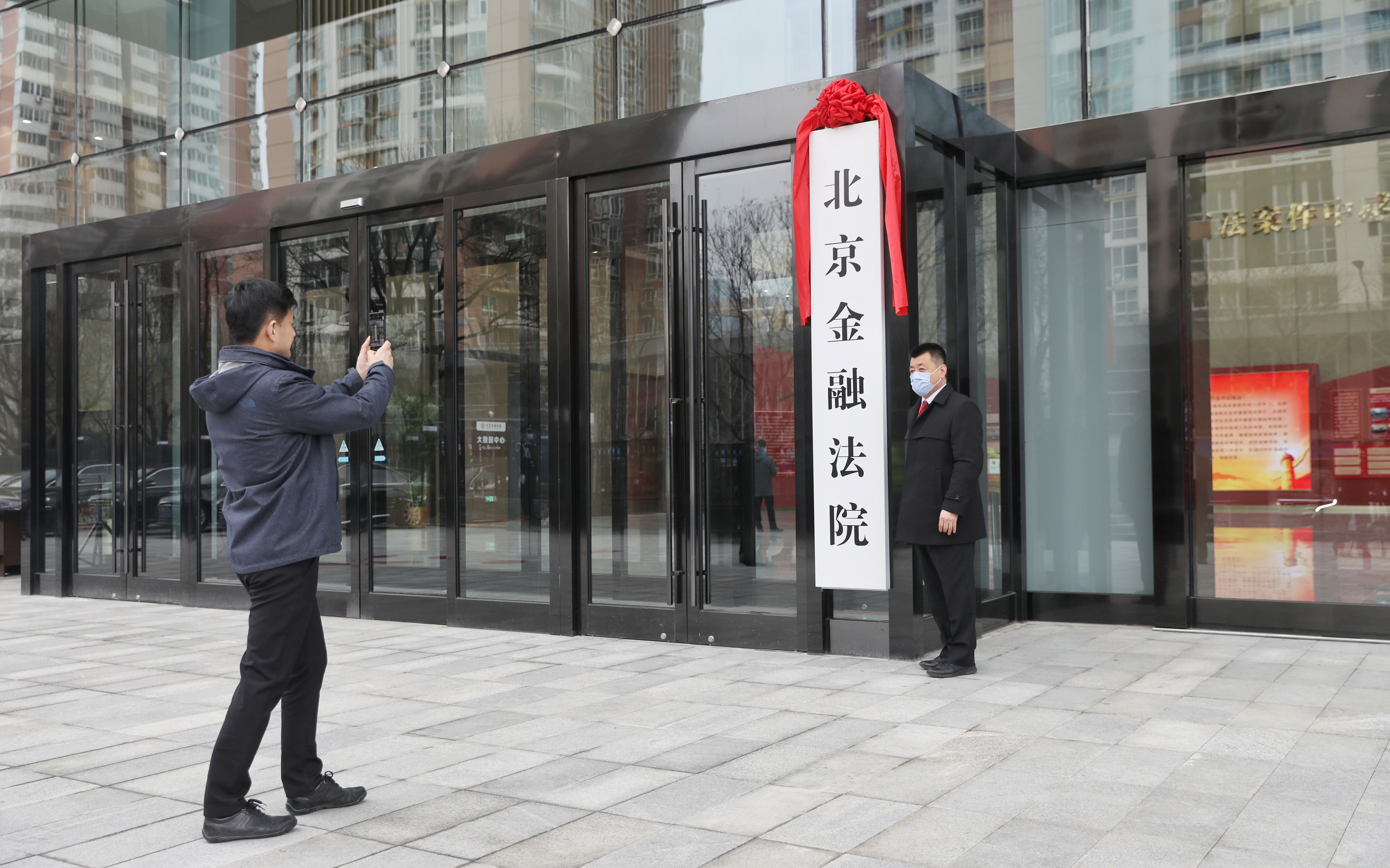 3月18日,北京金融法院正式成立。工作人员在门前拍照留念。新京报记者 王飞 摄