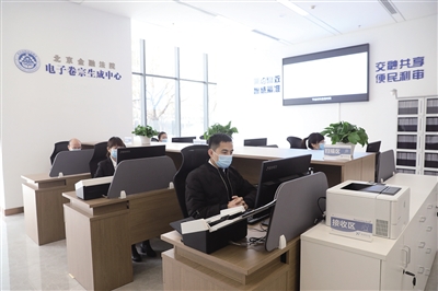 3月18日,北京金融法院正式成立。图为电子卷宗生成中心。新京报记者 王飞 摄