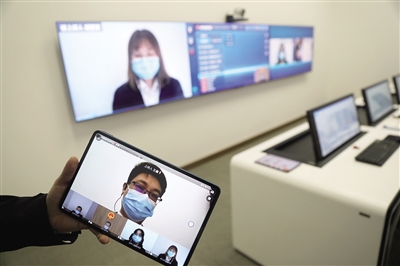 3月18日,北京金融法院正式成立。工作人员展示线上5G法院。新京报记者 王飞 摄