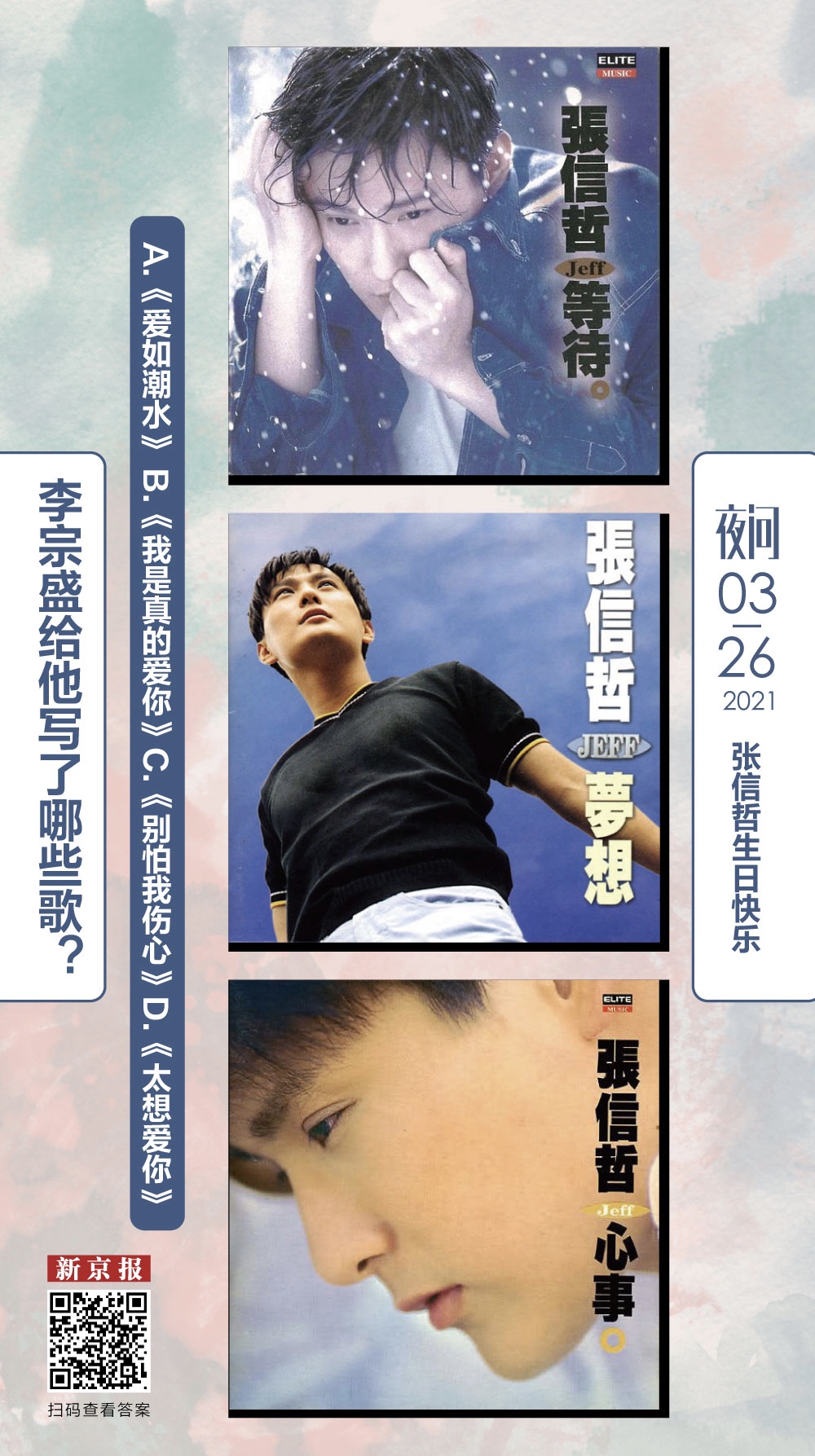 虽然张信哲的几首代表作都出自李宗盛,但最初他曾在面试中被李宗盛拒绝。在新京报专访中他曾讲述那段故事。