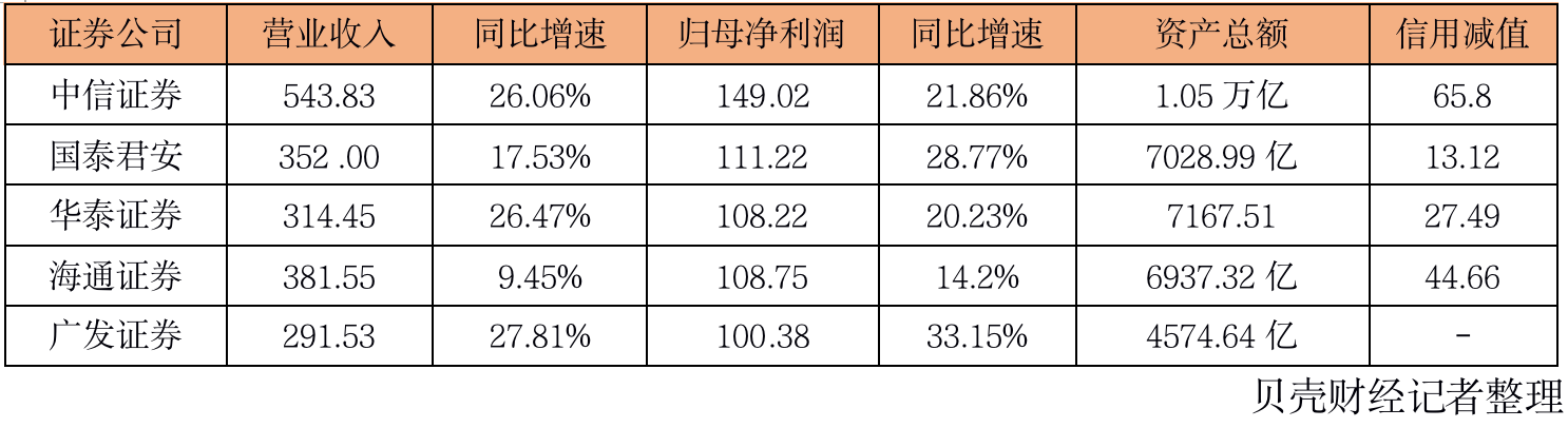 5家头部券商净利过百亿,中信证券领先,榜眼竞争激烈