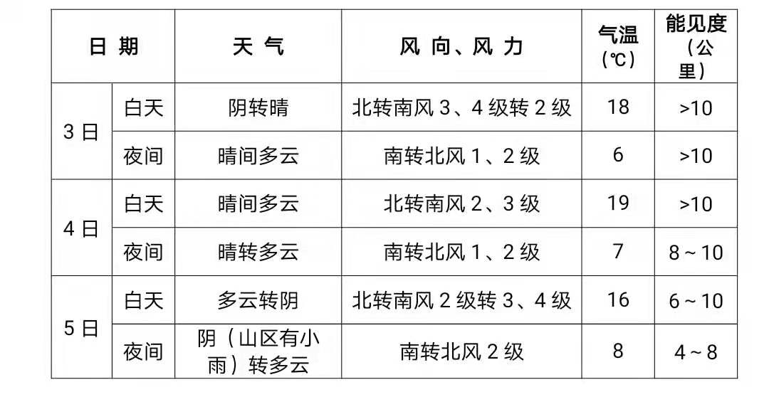 新京报快讯(记者 李玉坤)北京市气象局消息,预计清明节假期(4月3日-5日),北京以晴到多云为主,能见度总体较好,气温较为平稳,白天最高气温16℃~19℃,夜间最低气温6℃~8℃。4月5日夜间山区有小雨,3日和5日分别有3、4级偏北风和偏南风。