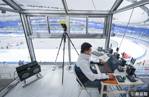 国家速滑馆成绩副经理衣小萌介绍,“冰丝带”的成绩团队共13个人,负责运动员的成绩从前端采集、处理直到最后在大屏和电视上显示整个流程的成绩处理工作。
