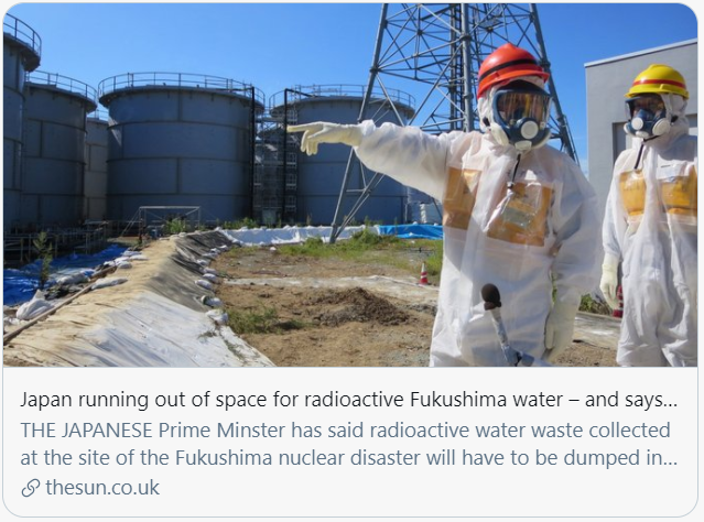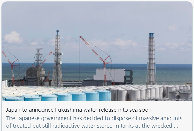 日本即将宣布将福岛核废水排入大海。/推特截图