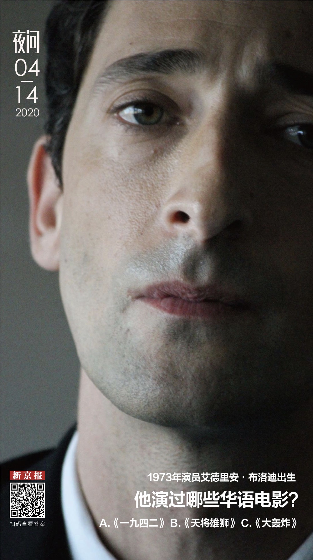 冯小刚导演的《一九四二》中他饰演深入民间报道灾难真相的美国记者白修德;李仁港导演、成龙主演的电影《天将雄狮》中他饰演罗马帝国大王子提比斯;在《大轰炸》中他戏份不多,但也愿意与中国演员们合作。艾德里安·布洛迪,早在2003年就凭借《钢琴家》获得奥斯卡最佳男主角,为什么要多次与华语导演合作呢?