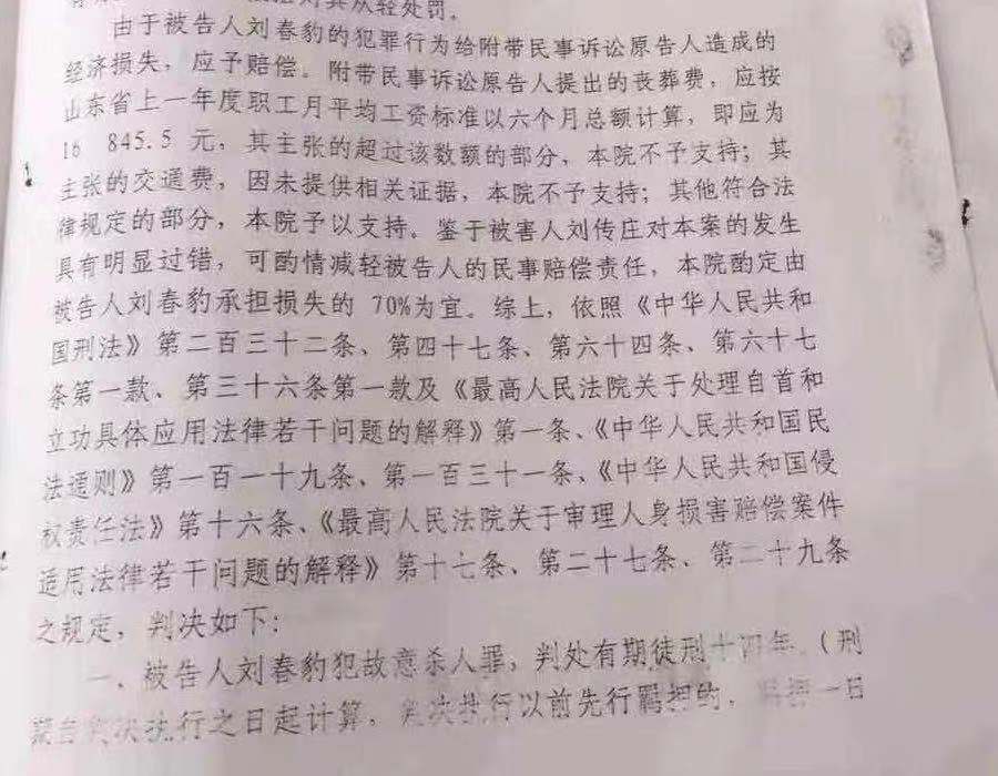 4月13日,48岁的山东男子刘春豹向潍坊市中级人民法院递交了再审申诉书。10年前,刘春豹因故意杀人罪被法院判处有期徒刑14年,死者系刘春豹的同村村民刘传庄。