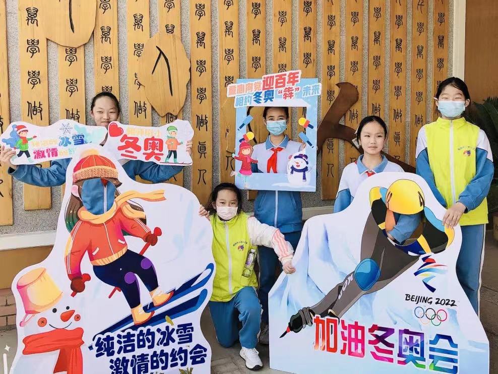 在冬奥项目体验营项目中,同学们在速滑、冰壶等运动项目中感受冬奥,用拍照传递冰雪文化。