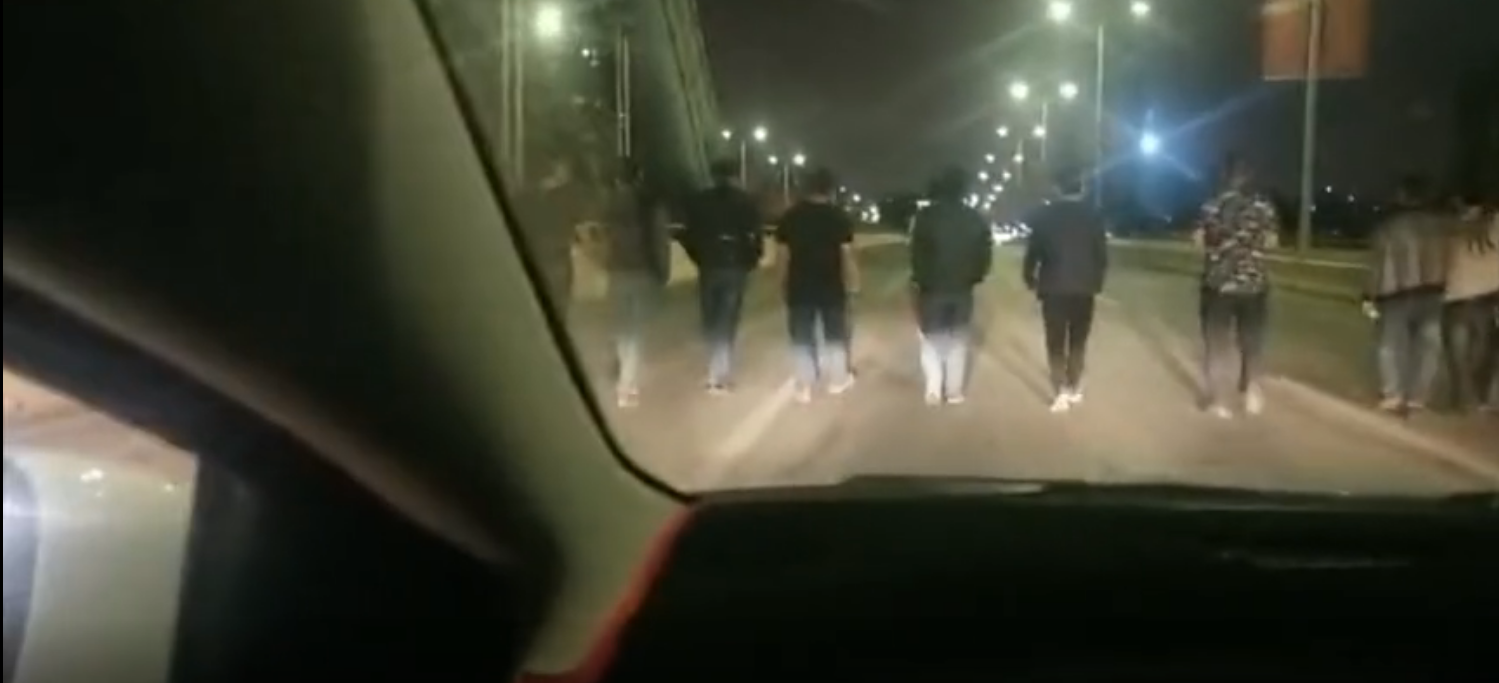 4月16日晚10点,在广西南宁八尺江大桥上发生怪诞一幕:十几人并排压马路,组成人墙占用机动车道,走走停停持续了半个多小时,导致当地邕宁区交通一度瘫痪。在视频中可以看到,几十辆机动车被挡路,司机纷纷鸣喇叭示意,甚至有司机怒骂不止。