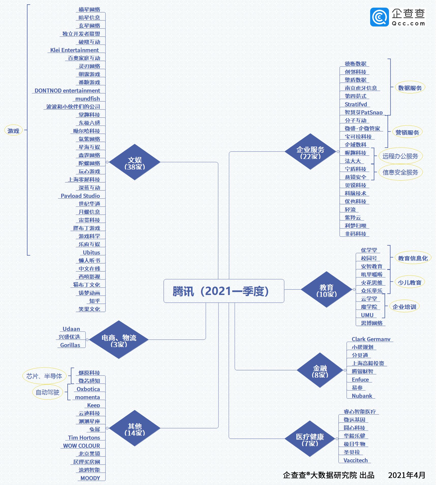 2021年一季度腾讯投资版图 制图:企查查大数据研究院