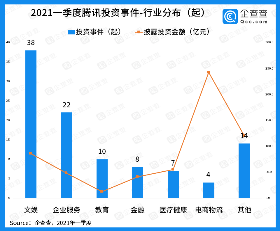 一、一季度腾讯投资事件103起,披露融资金融超600亿元