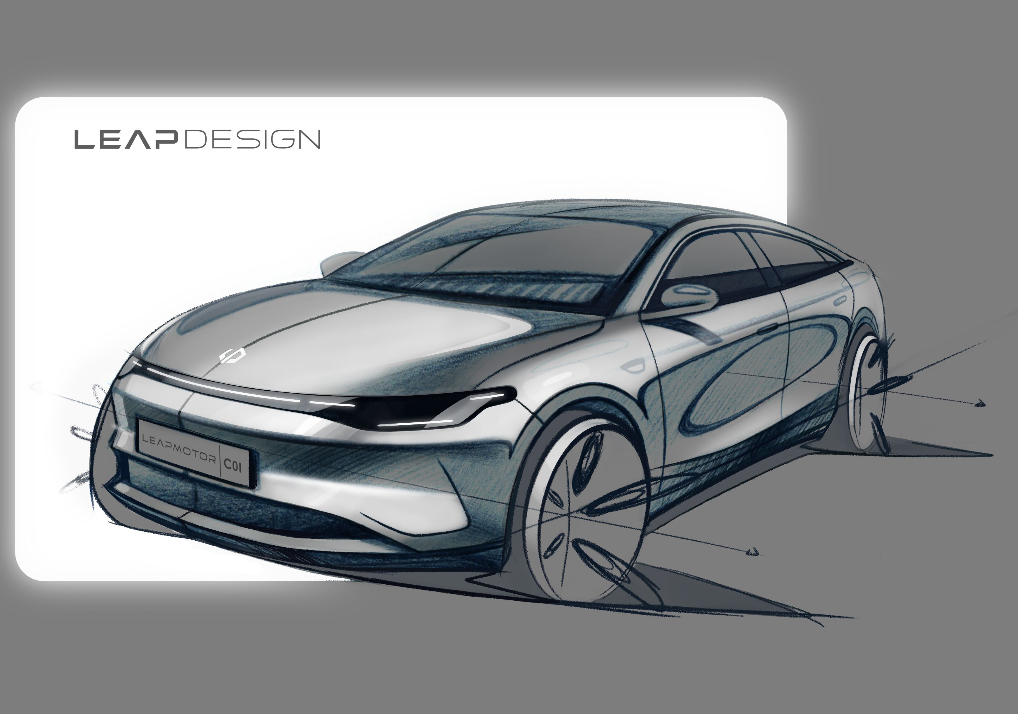 零跑科技在本次车展首次展示了C01设计草图。C01作为零跑科技第四款量产车型,采用C11同平台正向研发设计,定位中高级纯电轿车,车身长度超5m,NEDC续航里程超700km,预计2021年Q3季度正式亮相。