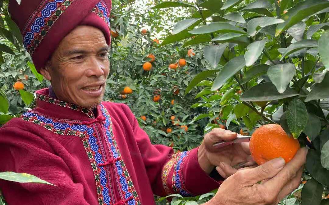 广西65岁的农户李东光在采摘沃柑。受访者供图