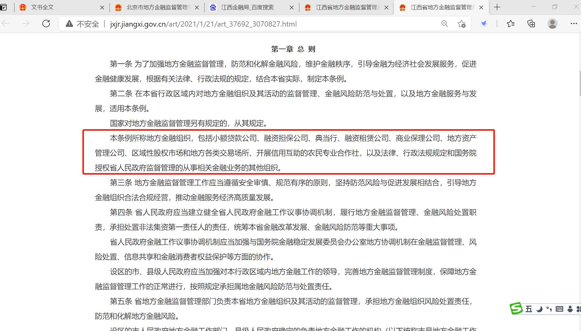 条例第一章总则第2条第3款对本条例所称“地方金融组织”做出明确界定,指“国家授权由地方实施监督管理的小贷公司、融资担保公司、区域性股权市场、典当行、融资租赁公司、商业保理公司、地方资产管理公司、地方交易场所以及国家授权地方监督管理的其他金融组织。”