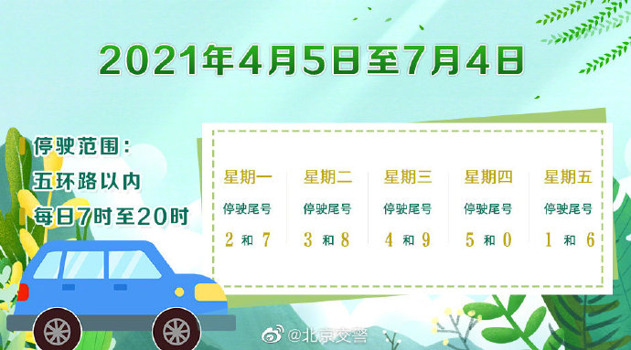 今天是4月23日,星期五,7时至20时五环内(不含五环主路)机动车限行尾号为【6】和【1】。请您注意尾号限行日期变化,及时调整自驾车出行计划。