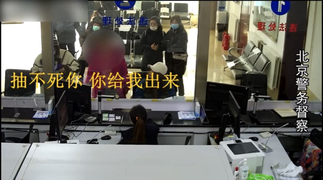 执法站内摄像头记录下了女子辱骂民警的画面。北京市公安局警务督察总队供图