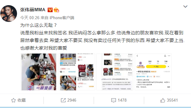 此外,她对网传“张伟丽输得一点也不冤,赛前不好好训练休息,卖签名赚钱”的说法予以辟谣。她直言这种行为“无耻”,“希望大家不要买,我没有卖过任何关于我的东西,希望大家不要上当。”