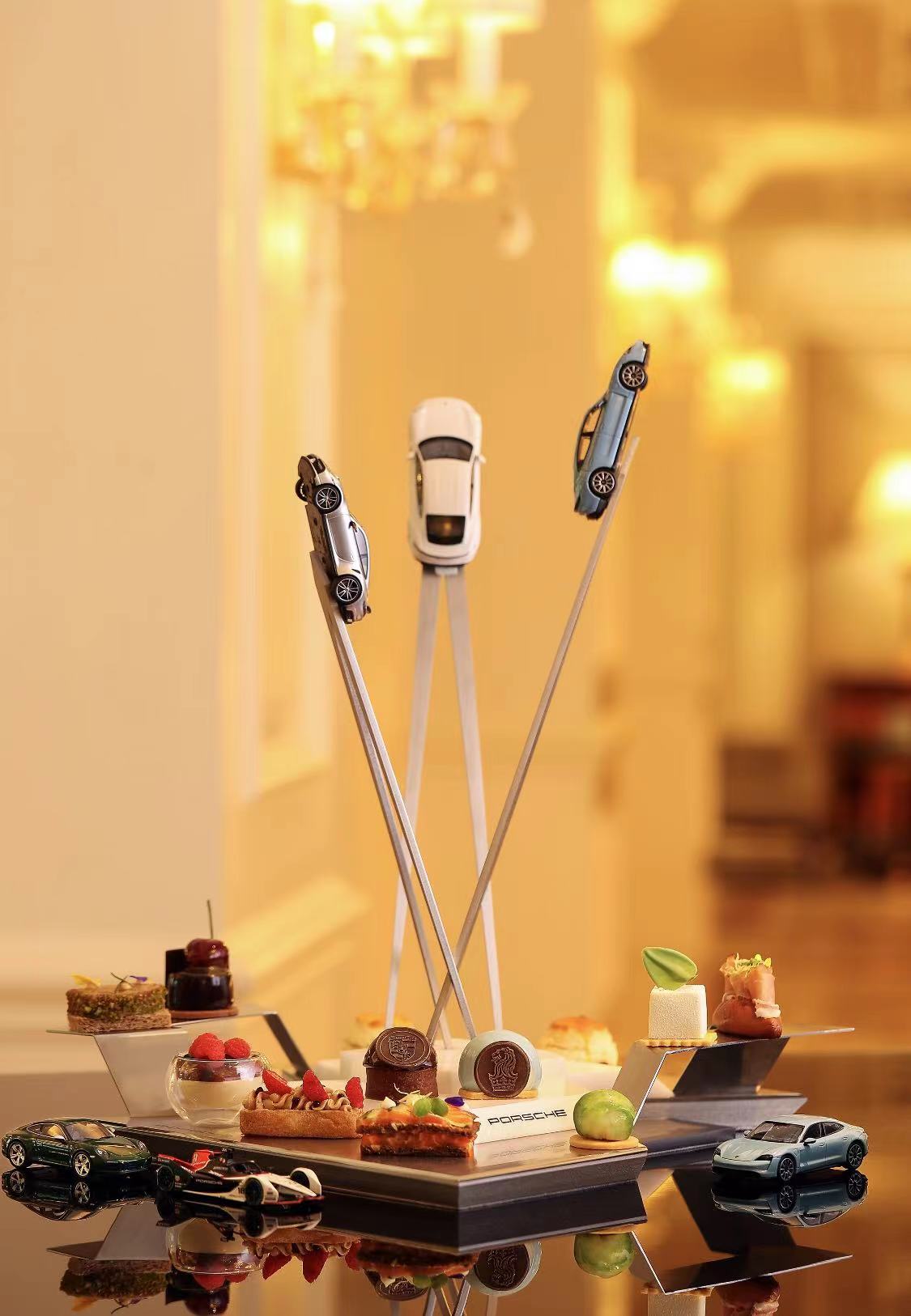 如果经典下午茶和摩登跑车“混搭”,会带来什么样的效果?不妨趁着风轻花开,坐在北京丽思卡尔顿酒店大堂酒廊,享受奇妙的下午茶。最近,酒店联合保时捷向传奇致敬,推出了“电驰神往”主题下午茶,带来了摩登与经典的美味碰撞。设计新颖的下午茶托盘,以保时捷博物馆门口的巨型雕塑为灵感,充满动感美学。