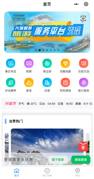 只见游客不少,但鲜有聚集排队的现象。相关负责人介绍,为了打造智慧旅游景区,兴城智慧旅游服务平台上线了“云游兴城”微信小程序。通过小程序,游客不仅可快速实现购票、规划旅游线路、景区导览等服务,还能实现线上办理住宿、购买文创产品等需求,大大方便游客的同时,也提升了整体的运作效率。