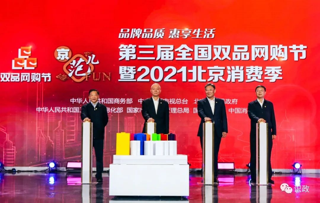 据识政微信公众号消息,4月28日晚,第三届全国双品网购节暨2021北京消费季启动。市委书记蔡奇,商务部部长王文涛,中央宣传部副部长、中央广播电视总台台长慎海雄,市委副书记、市长陈吉宁出席启动活动。