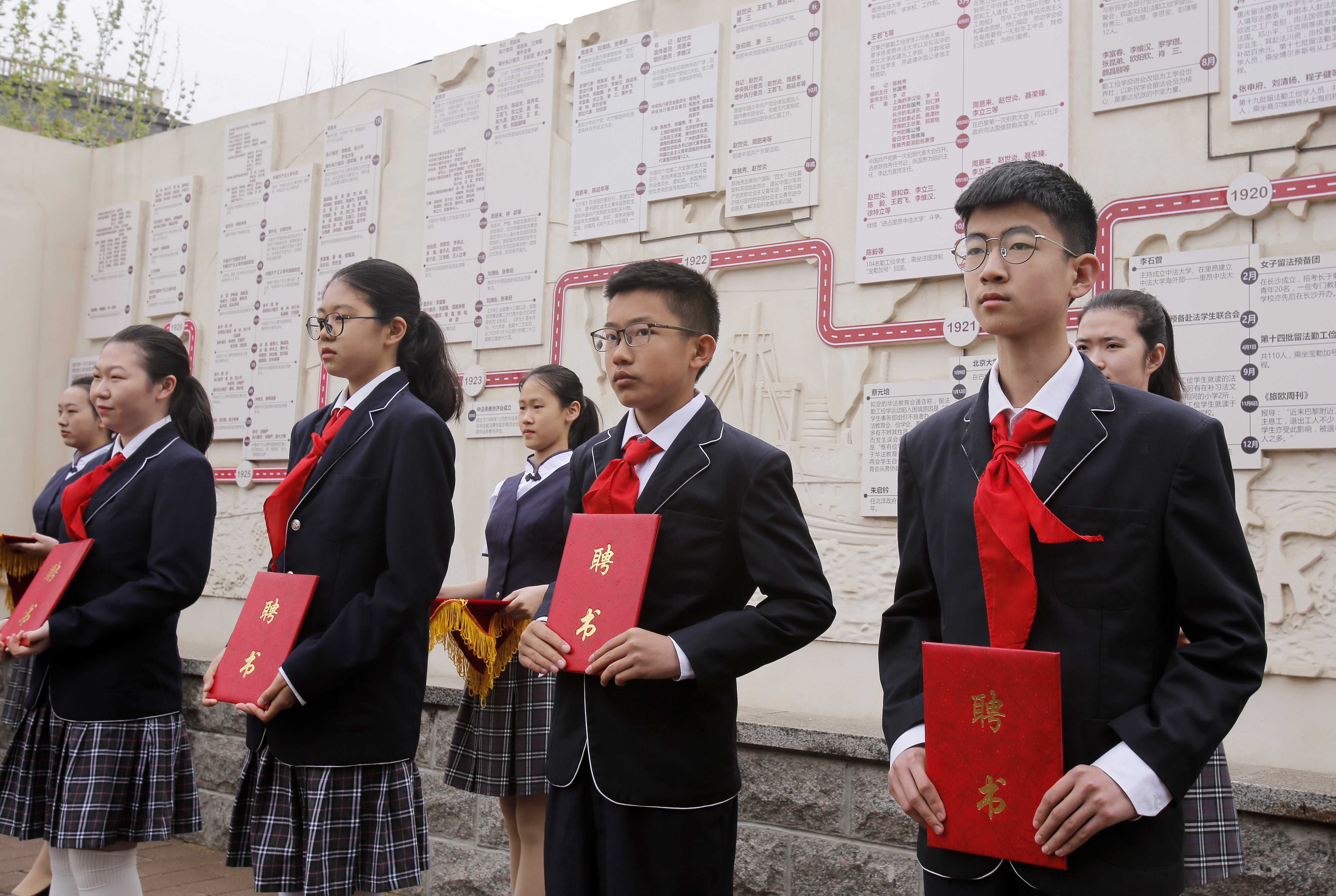 新一批“小小红色讲解员”代表接受聘书。丰台区教委供图
