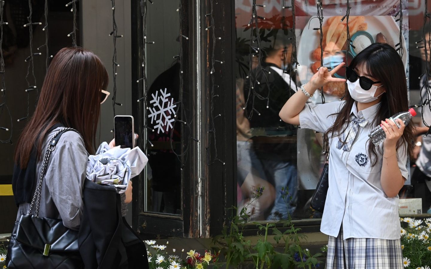 5月3日,南锣鼓巷,游客拍照留念。摄影/新京报记者 陶冉