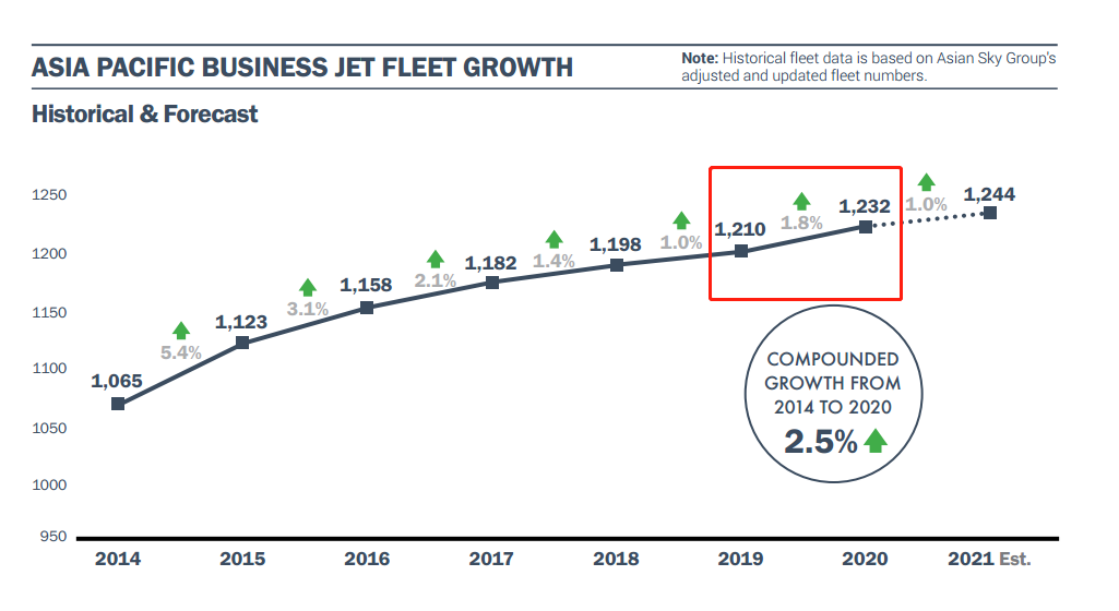 2020年亚太地区公务机机队逆势增长1.8%