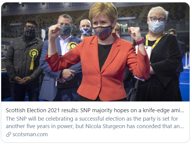 就目前来看,苏格兰民族党有望赢得第四届任期,不过尚不确定其是否会赢得绝对多数席位。此前《泰晤士报》民调数据显示,苏格兰民族党将获得129个席位中的65个席位,即满足绝对多数的最低标准。