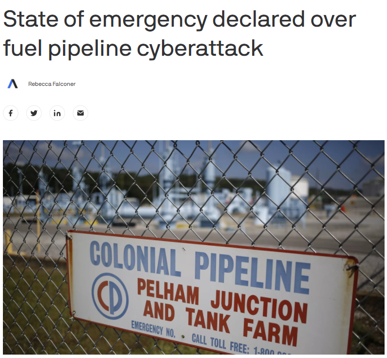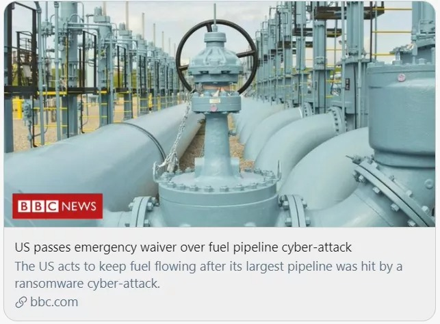 其原因在于美国最大的燃油管道运营商Colonial Pipeline受到勒索软件攻击,因此被迫关闭其美国东部沿海各州供油的关键燃油网络。