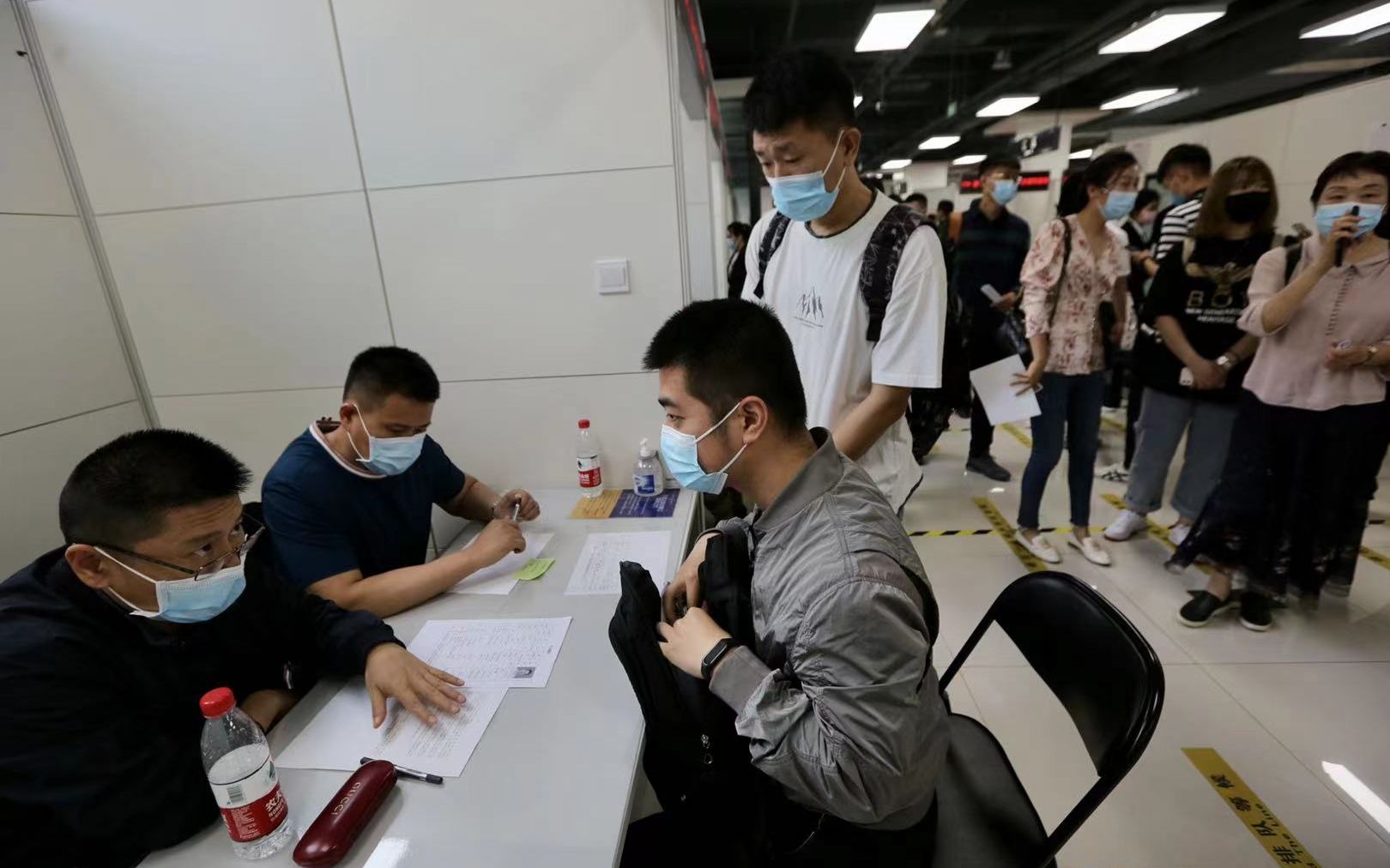 退役大学生士兵在招聘点应聘。新京报记者 郑新洽 摄