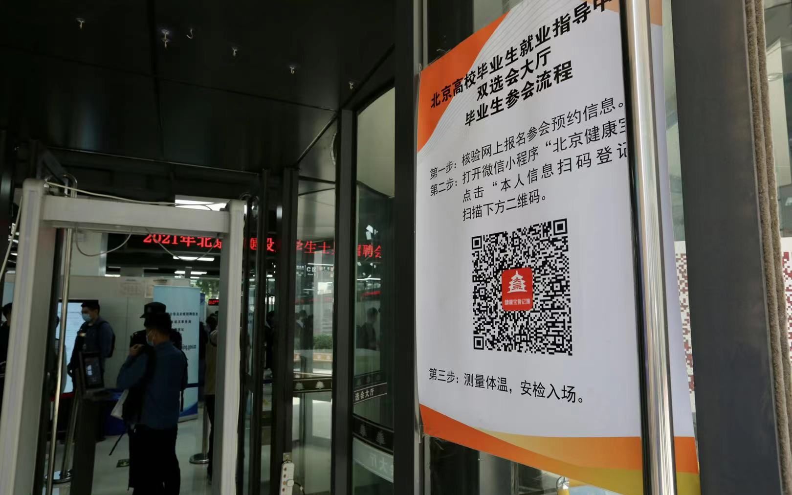 进入招聘会需扫码并测温。新京报记者 郑新洽 摄