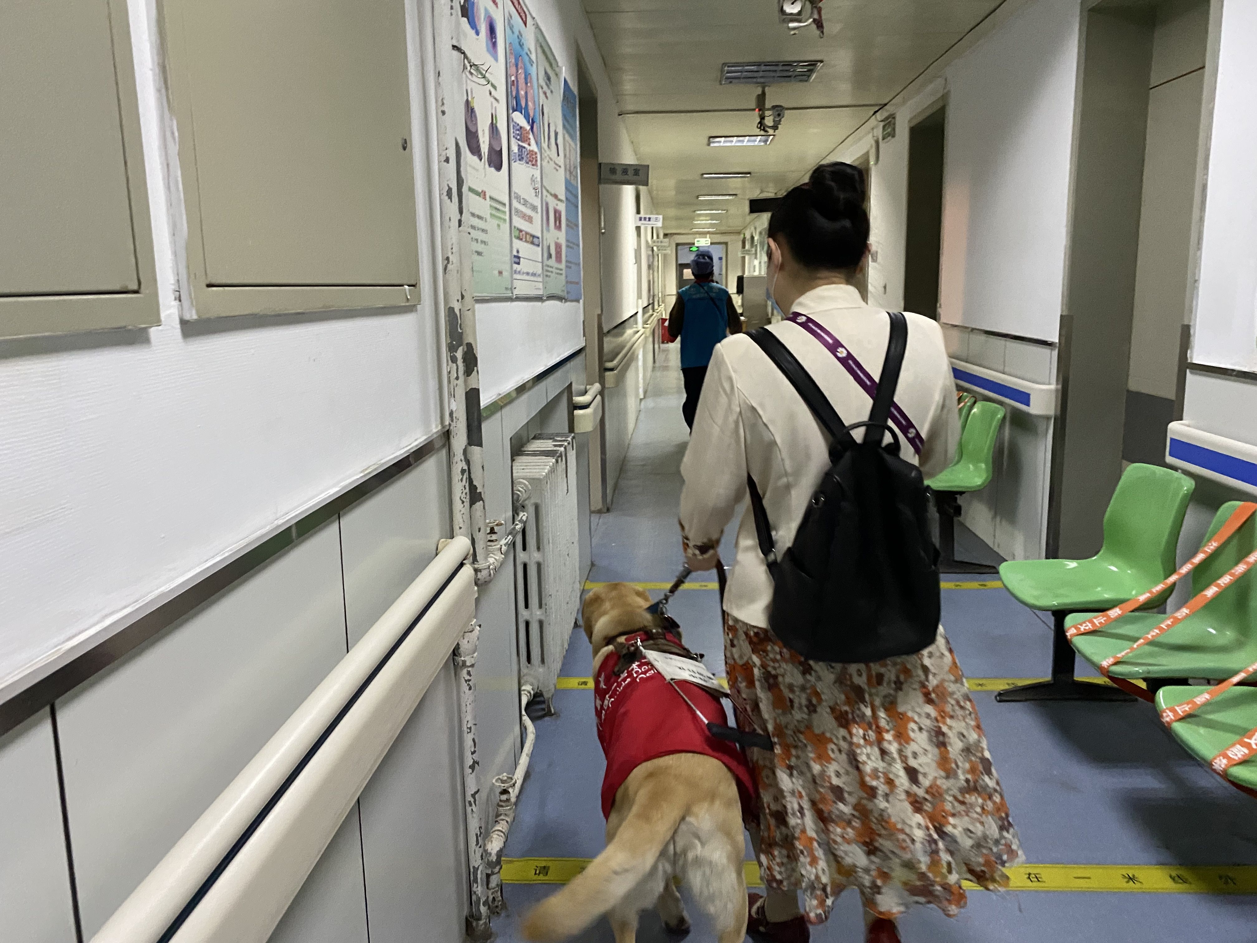 大概两分钟之后,志愿者回来告诉周彤,“医生办公室说导盲犬可以进”。