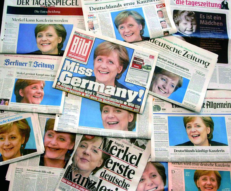 2005年,德国报纸刊登的默克尔报道。 当年,默克尔正式出任德国总理。图/IC photo